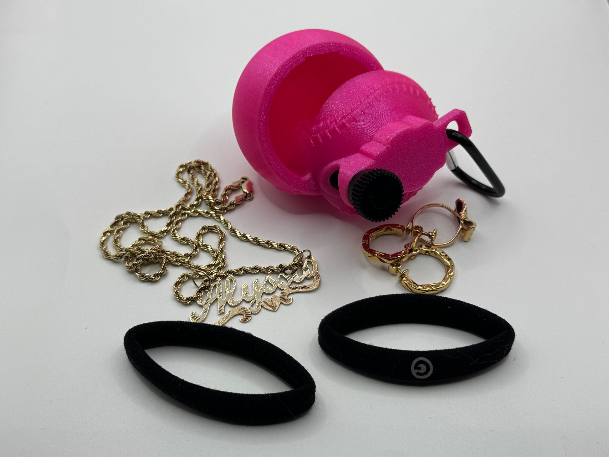 Meet the Soft-BOMB—your new go-to softball accessory! This tiny softball-shaped cutie opens up to hold your jewelry, hair ties, or little game-day must-haves. Clip it to your backpack, gym bag, or keys and you’re ready for anything.