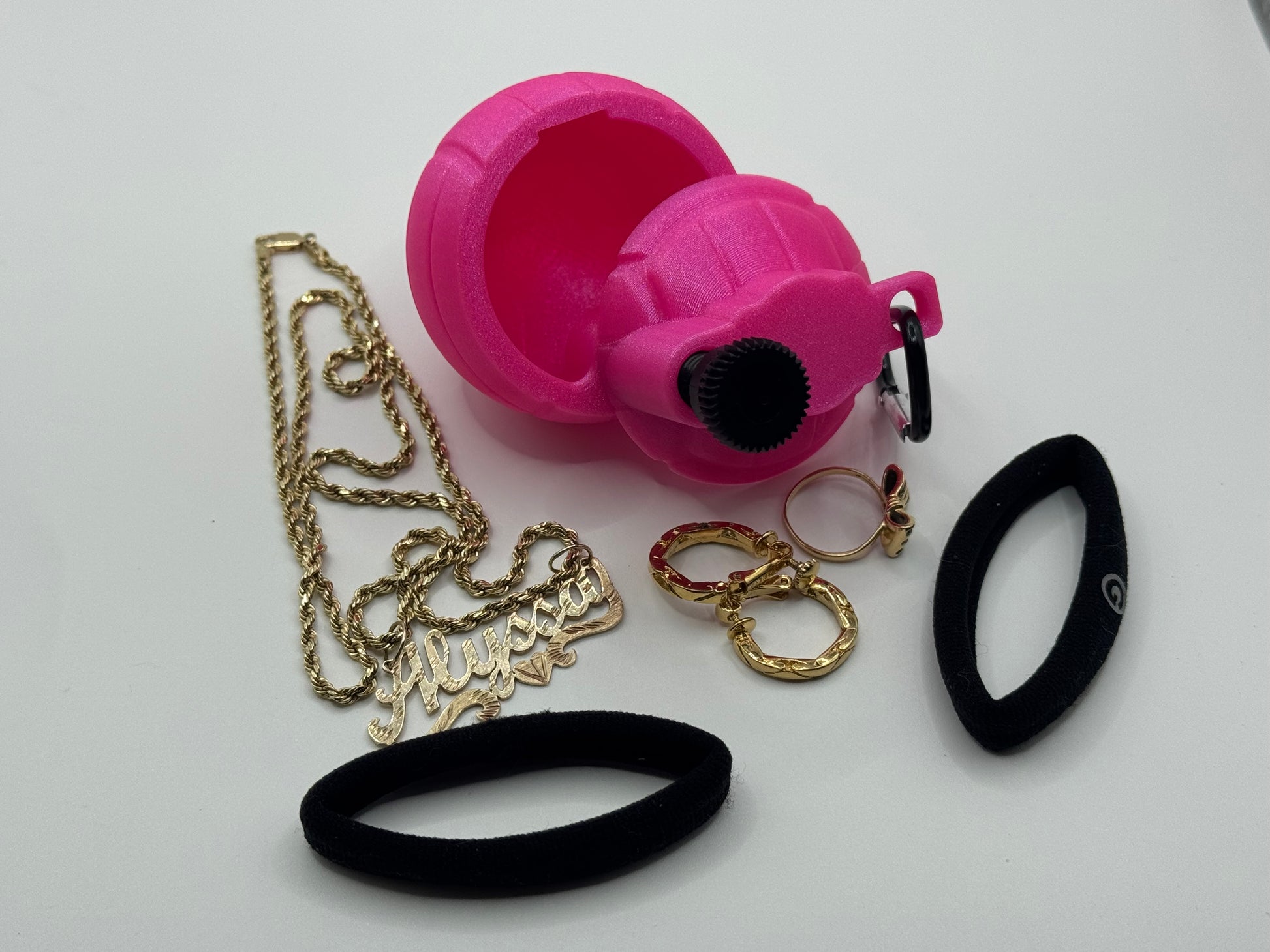 Meet the Volley-BOMB—your new go-to volleyball accessory! This tiny volleyball-shaped cutie opens up to hold your jewelry, hair ties, or little game-day must-haves. Clip it to your backpack, gym bag, or keys and you’re ready for anything.